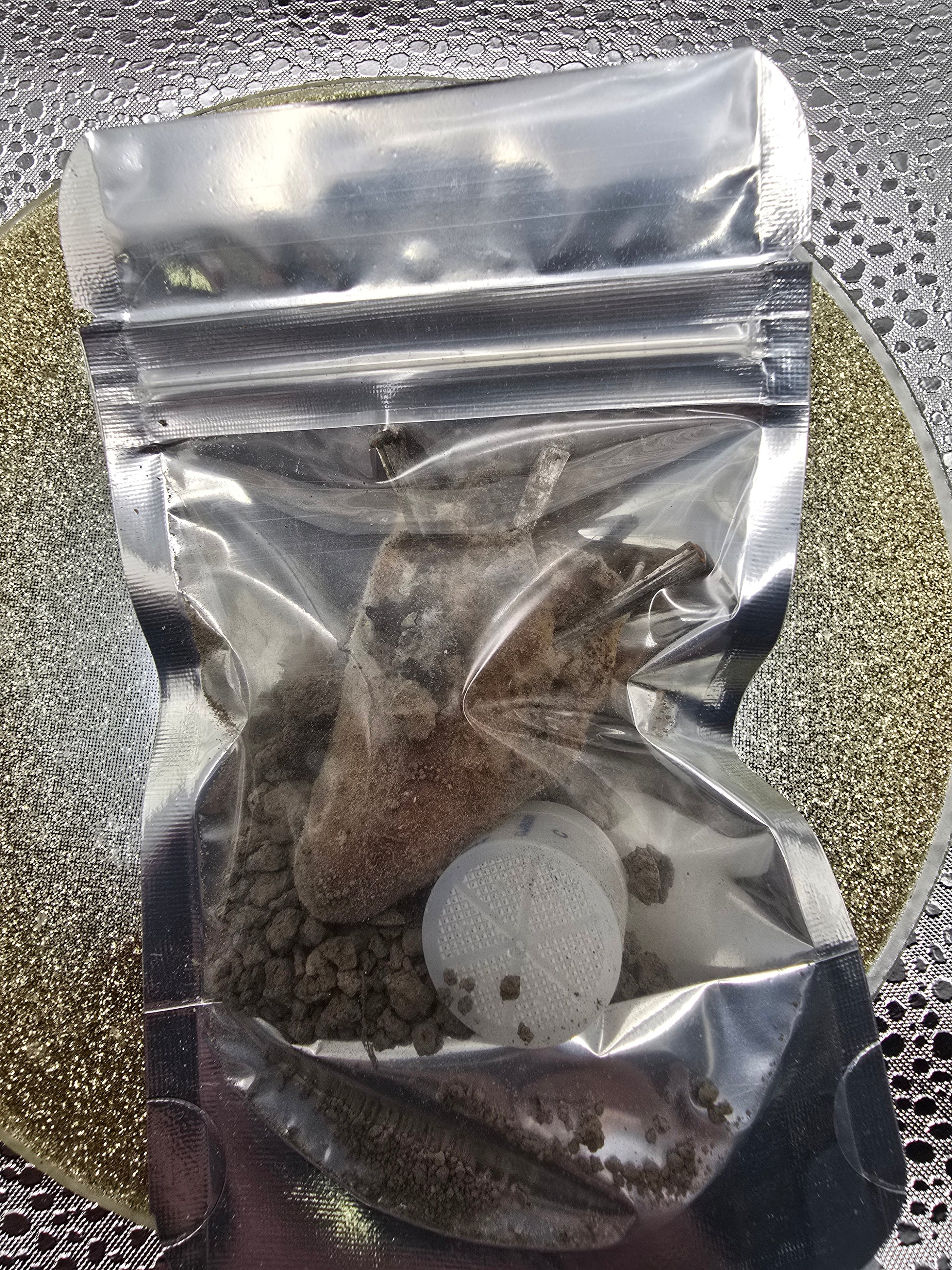 Thirdly they are dusted in some of the dirt from open graves. This aspect is like an open door into the the abyss of the unseen finality. Think ashes to ashes, dust to dust, as this dirt was unoccupied at the time of its gathering. Which creates the essence of a full on ceremony to lay to rest that which it is anointed with.